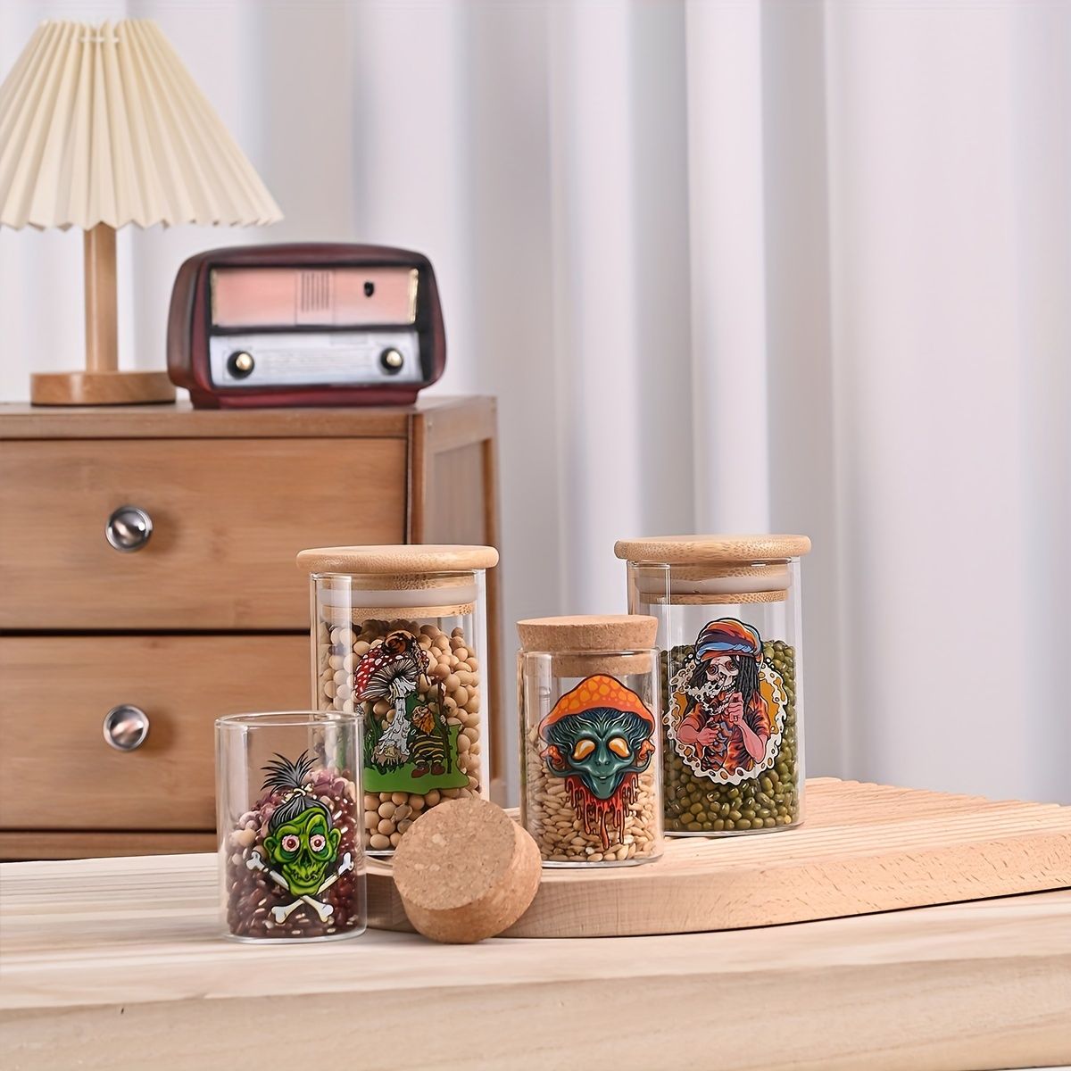 2pcs,Borosilicate glass jar,A glass cup with cartoon stickers