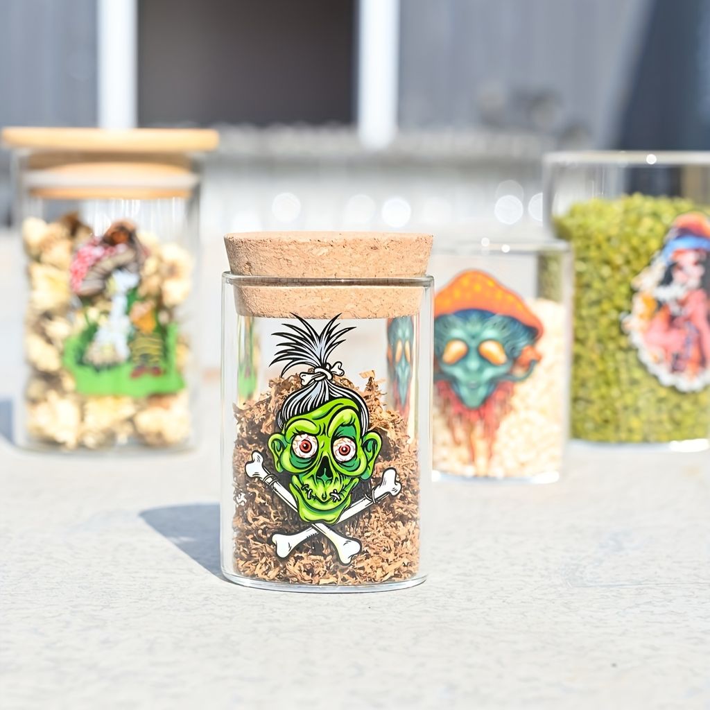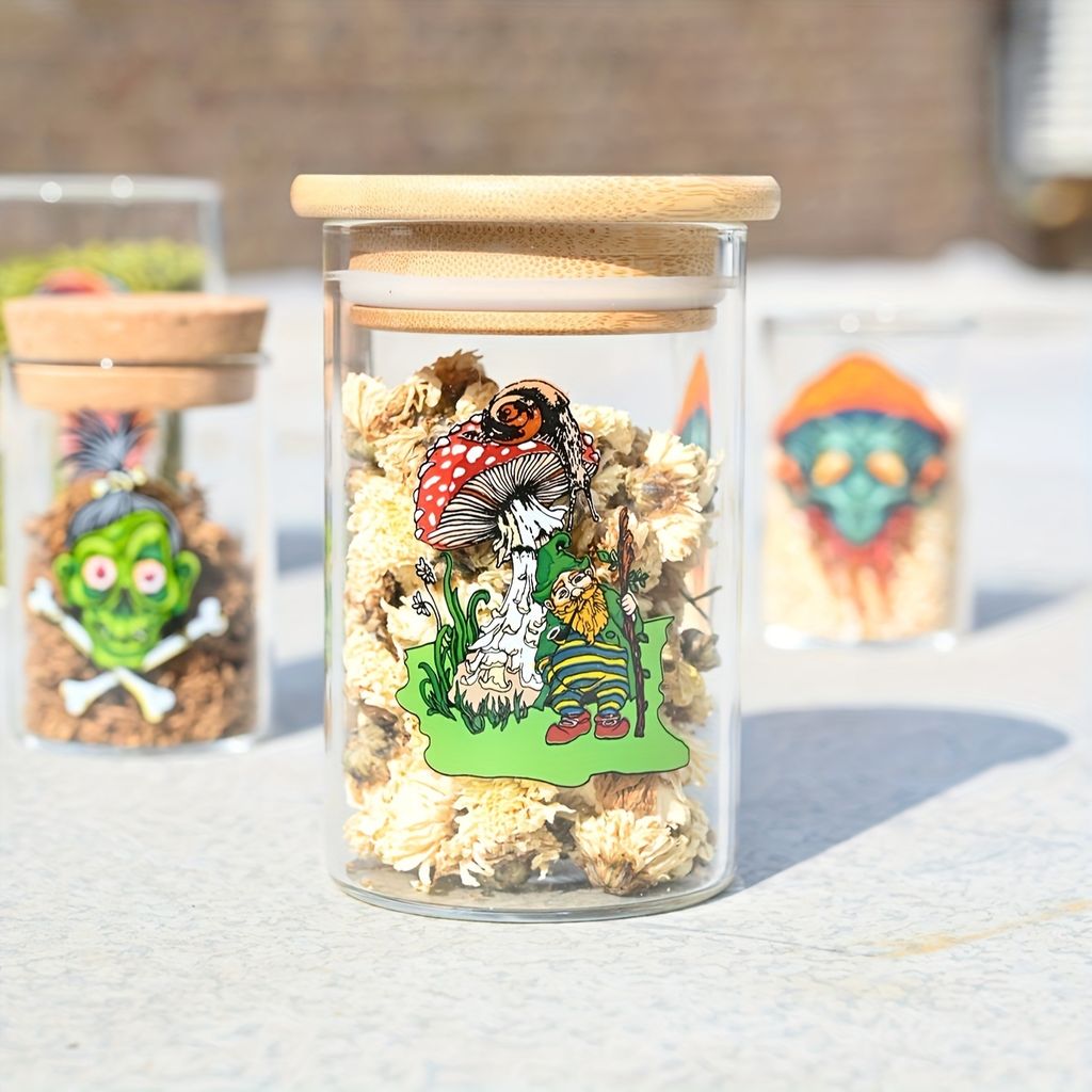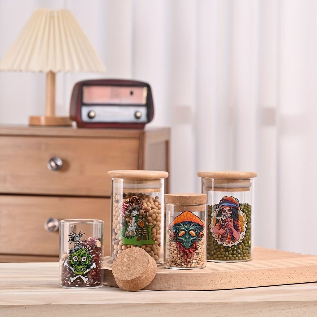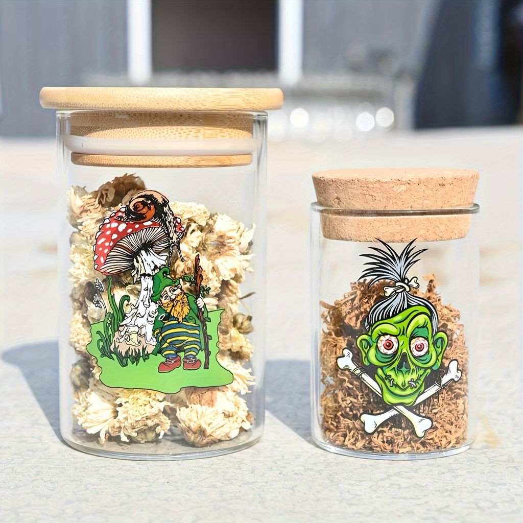 2pcs,Borosilicate glass jar,A glass cup with cartoon stickers