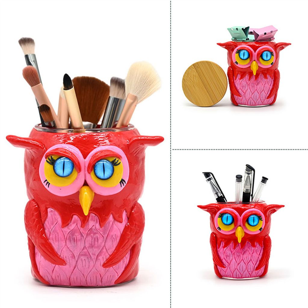 Handmade Kneading Polymer Clay Toothbrush Holder,Cartoon Owl,Borosilicate Glass Sealed Jar With Bamboo Cover,Glass Vase,Pen Holder,Home Decorations,Holiday Gifts