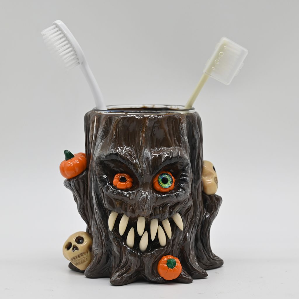 Handmade Polymer Clay Toothbrush Holder,Cartoon Halloween Root Of A Tree,Borosilicate Glass Sealed Jar With Bamboo Cover,Pen Holder,Home Decorations,Holiday Gifts