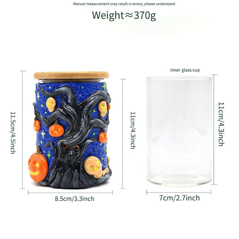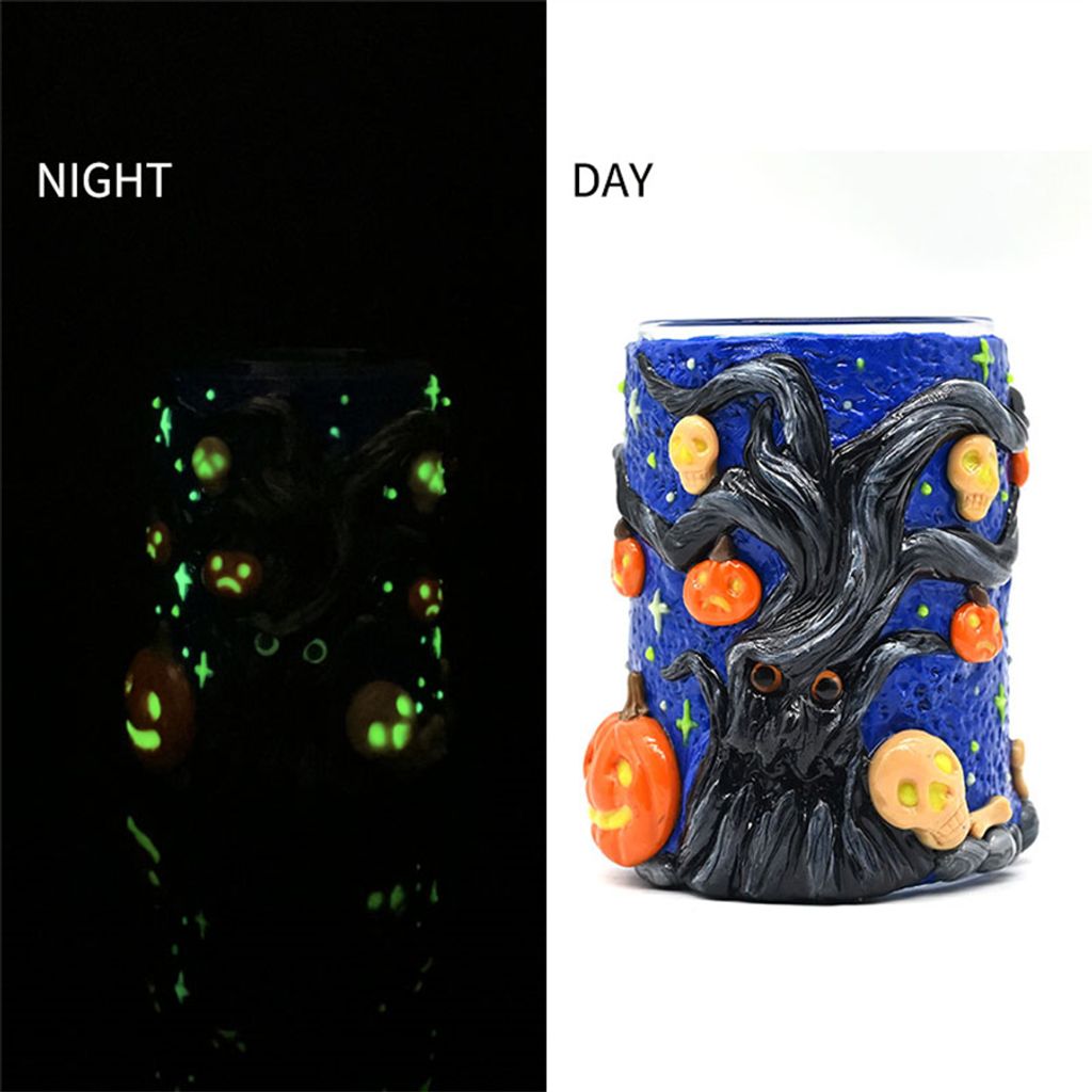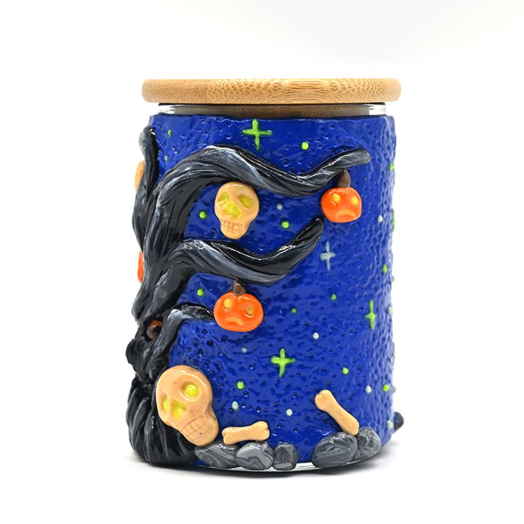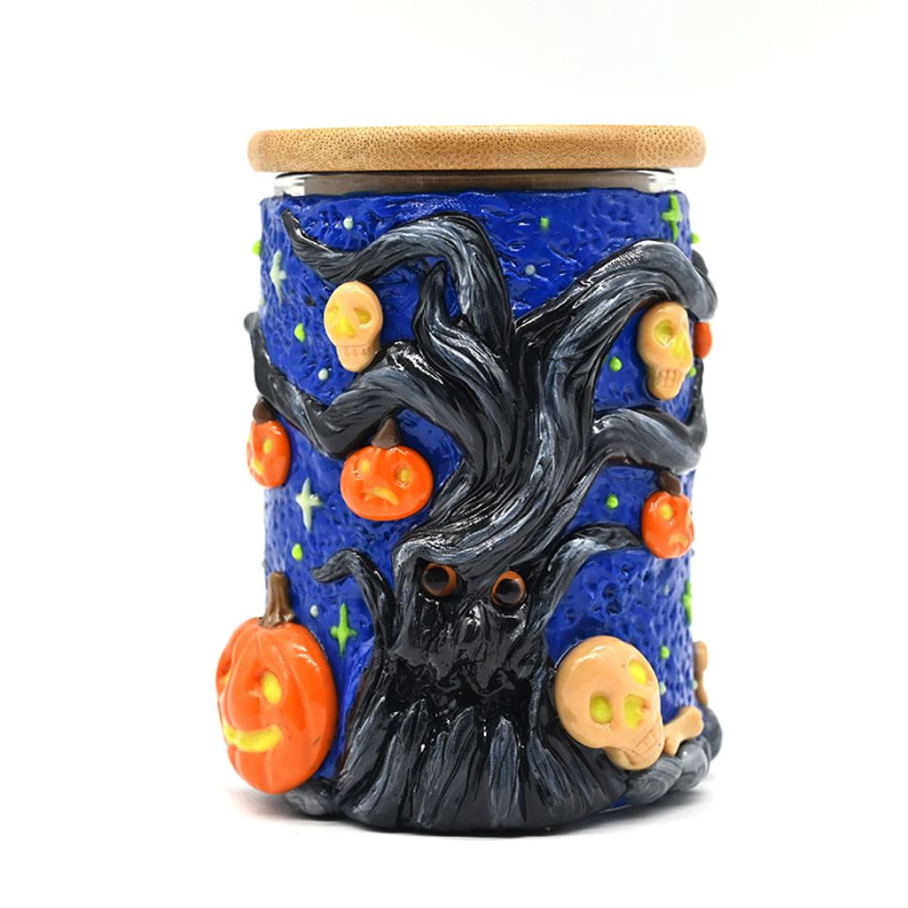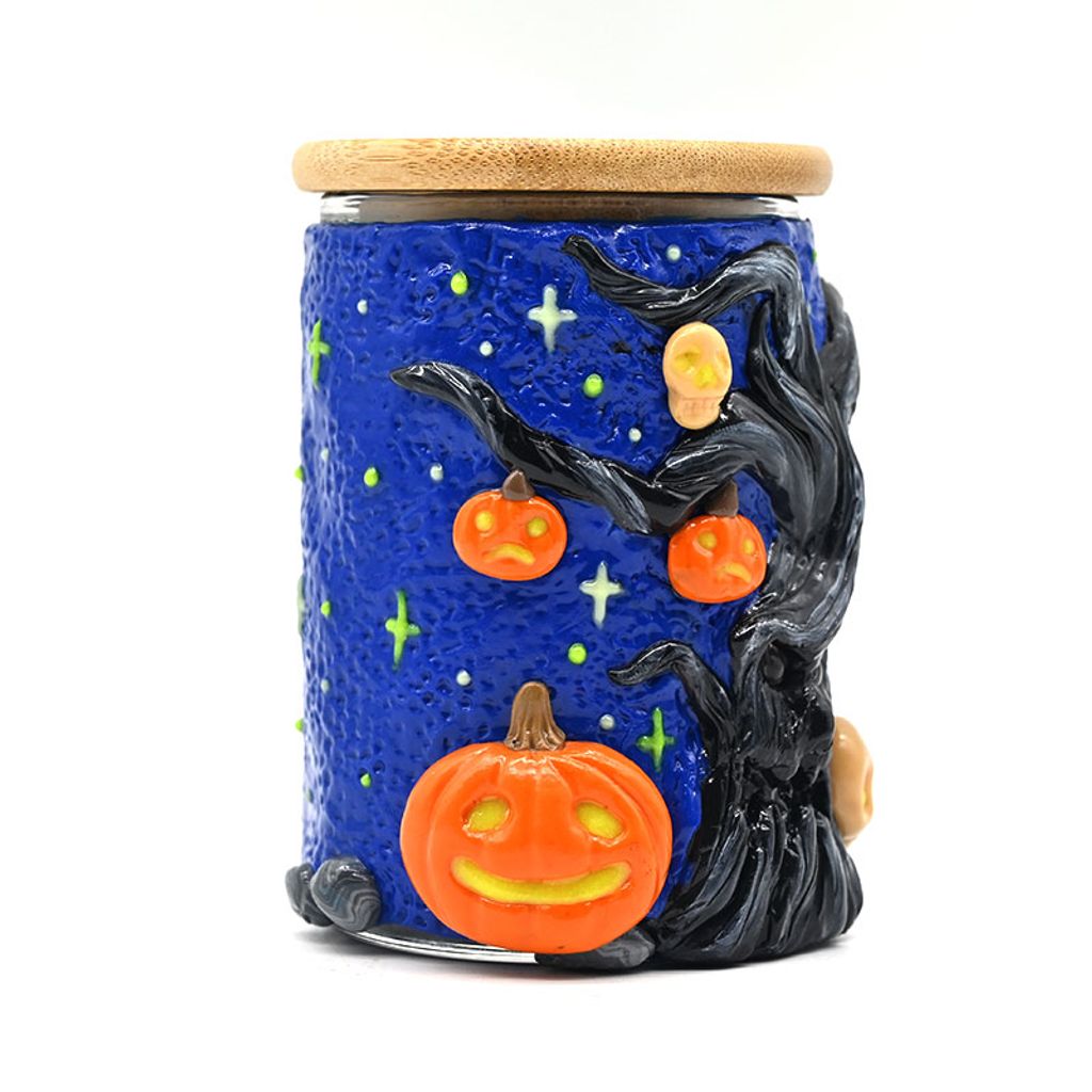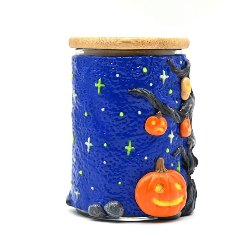 Handmade Polymer Clay Toothbrush Holder,Halloween Pumpkin,Glow In The Dark,Borosilicate Glass Sealed Jar With Bamboo Cover,Glass Vase,Pen Holder,Home Decorations,Holiday Gifts